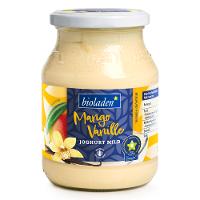 JOGHURT mild *, 9% Mangopüree*, Rübenzucker*, Tapiokastärke*, 0,1% Bourbonvanilleextrakt*, Verdickungsmittel: Johannisbrotkernmehl*Fettgeh. im Milchanteil: gleich 3.5 %