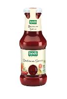 Wasser, Rohrohrzucker*, Tomatenmark*, Branntweinessig*, Maisstärke*, Steinsalz, Karamellzuckersirup*, Pfeffer schwarz*, Knoblauch*, SENFsaat*, Rauchsalz (Salz, Rauch), Gewürze*, Verdickungsmittel: Guarkernmehl*| Energie | Fett | gesättigte Fettsäuren | Kohlenhydrate | Zucker | Eiweiss | Salz |