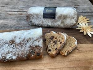 DINKELMEHL TYP 812* ², Sultaninen*, BUTTER* (11,5%), Dekorzucker* (Zucker*, Dextrose*, Palmfett*, Maisstärke*), Wasser, MANDELN*, Aprikosen getrocknet*, Honig*, MILCH*, Rum*, HEFE*, EIER*, Orangenschalenpaste* (Rübenzucker*, Orangenschalen*, Zitronensaft*, Orangensaft*, Orangenöl*), Meersalz, Zimt*, Macis*, Vanille*. ²= (UR-WEIZEN)