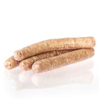 Schweinefleisch*, Meersalz, Gewürze (Pfeffer, Macisblüte, Petersilie, Zwiebelpulver)*, Vollrohrzucker*, Saitling| Energie | Fett | gesättigte Fettsäuren | Kohlenhydrate | Zucker | Eiweiss | Salz |