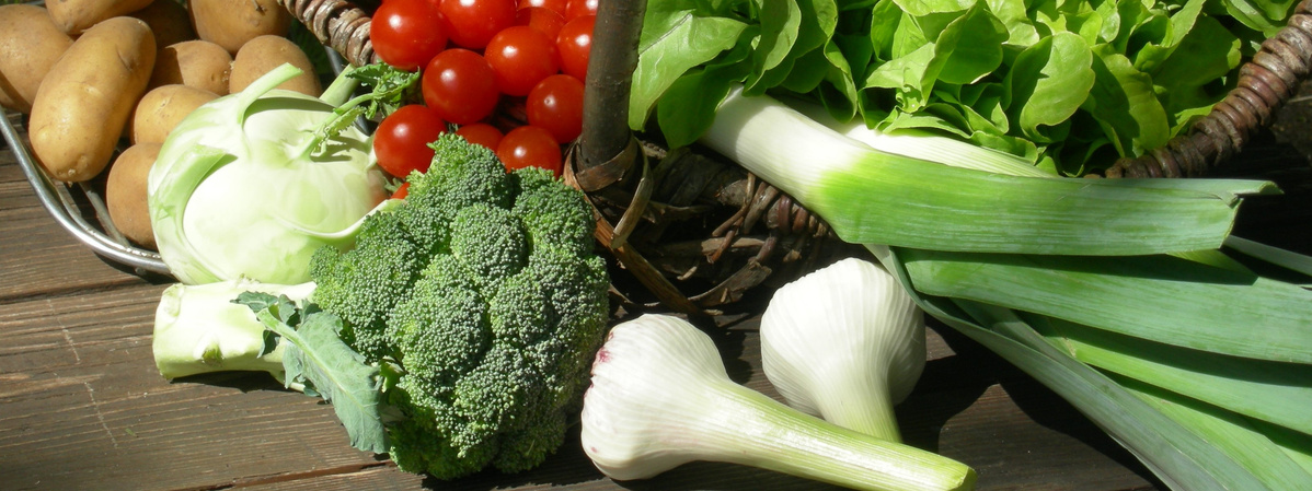 In unser Angebot planen wir jede Woche das frische Gemüse der Saison und die Produkte der benachbarten Bio- Höfe ein.